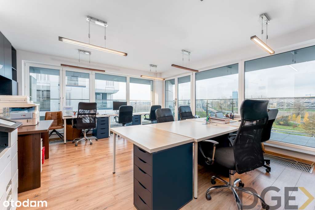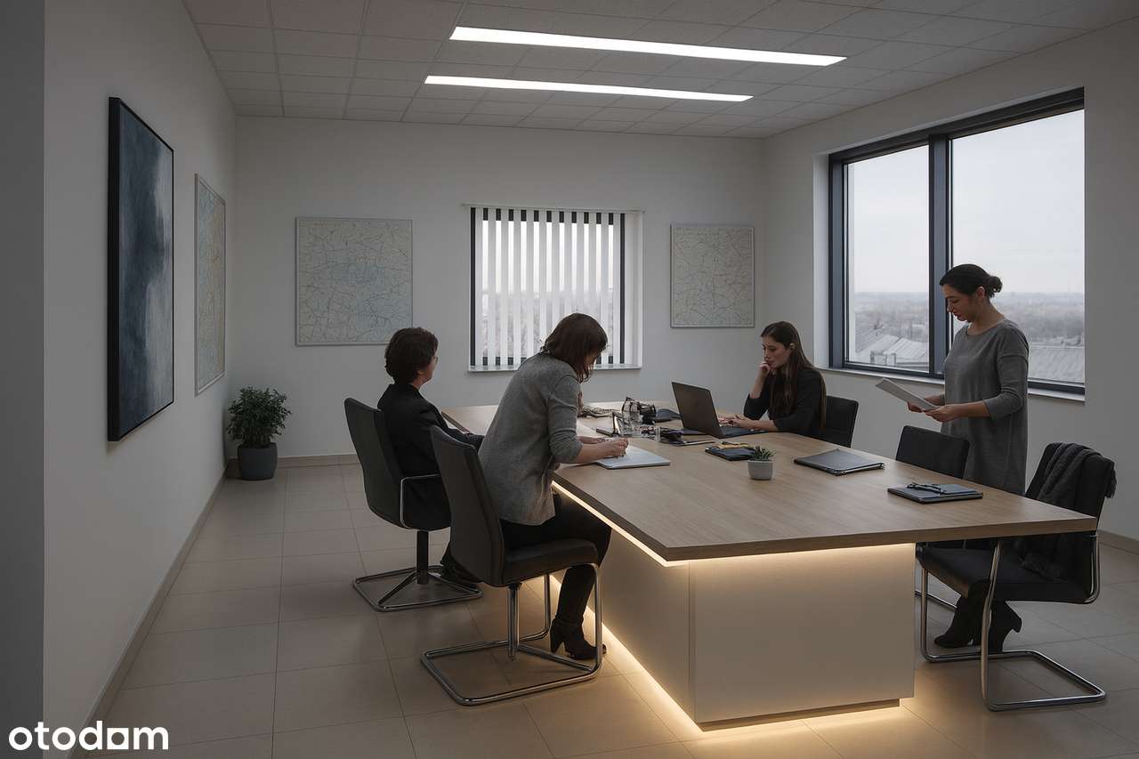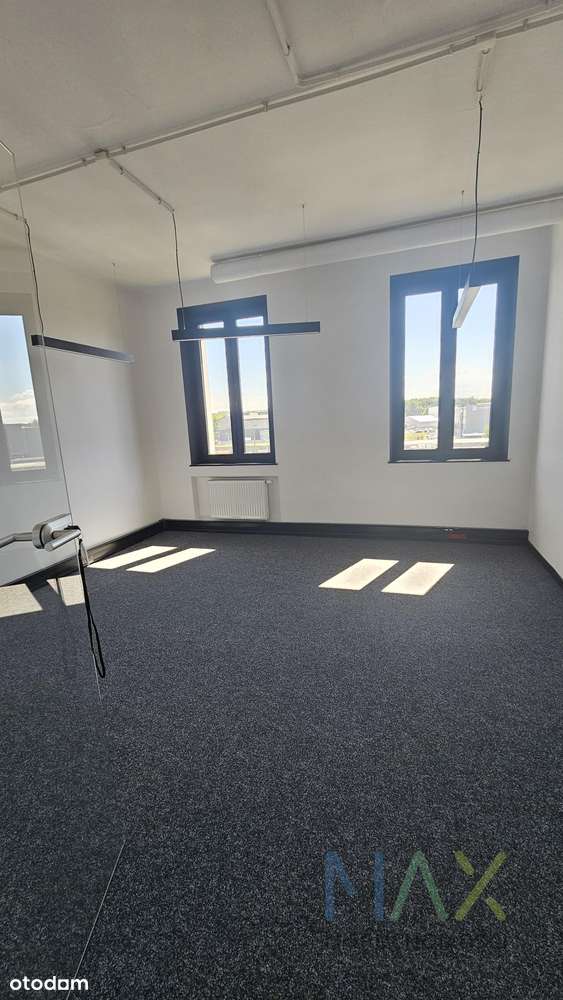 • Dobre naturalne oświetlenie z okien — ale dla biura, nie warsztatu