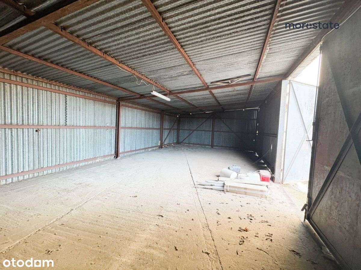 • Budynek magazynowy sugeruje solidną konstrukcję i potencjalnie istniejącą infrastrukturę przemysłową